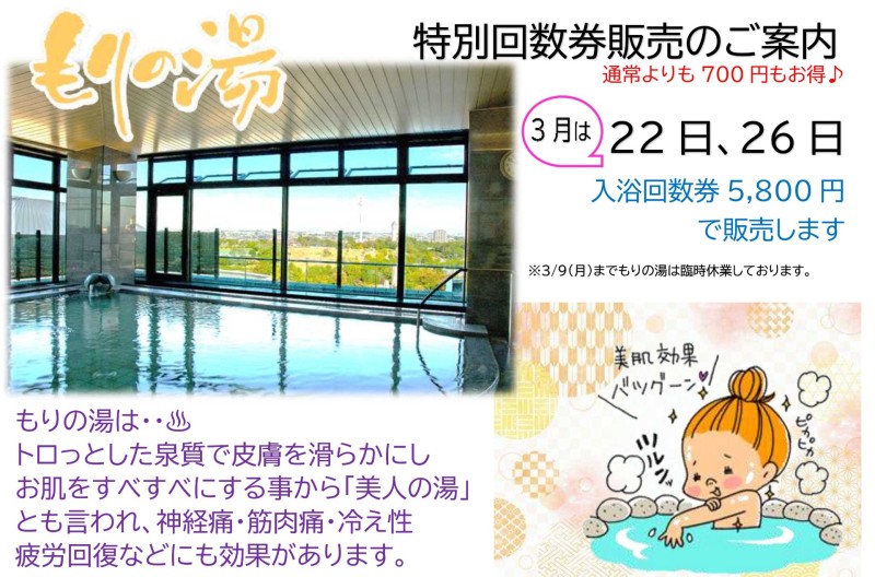 天然温泉「もりの湯」よりお知らせ